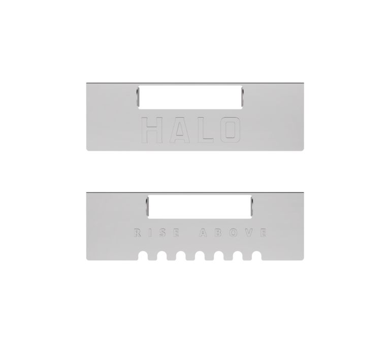 These grease-trap gates are the perfect sidekick to your full-size HALO griddle. Each gate closes off the rear of the griddle plate to keep food from falling into the grease trap. One features a scalloped pattern at the bottom to allow free flow of grease, while the other features a solid edge to keep as little grease from exiting as possible. Each gate still allows for use of our utensil clean-off squeegee.