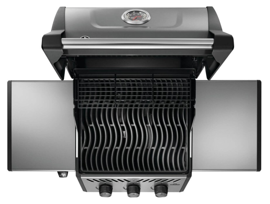 The Freestyle 365 Propane Gas Barbecue is a compact grill with premium features and unbeatable value. Ignited by the instant JETFIRE ignition system that lights the main burners with a jet of flame easily, every time. Get the perfect sear over the cast iron porcelainized enamel cooking grids. Three stainless steel burners provide heat that can be easily controlled by ergonomic knobs and monitored by the onboard temperature gauge. The rugged wheels allow this barbecue to go where the action is, while the easy-to-fold side shelves, featuring tool hangers and a bottle opener, make sure that the Freestyle meets your lifestyle and space.