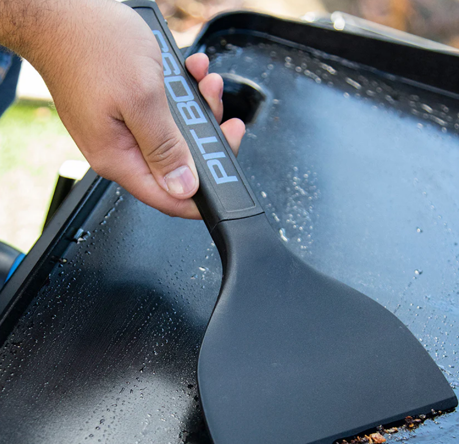 The Pit Boss 5-piece Ultimate Griddle Kit is the must-have toolset for getting the most out of your flat top griddle. This kit includes 2 Ultimate Griddle spatulas, 1 Ultimate spatula, 1 griddle scraper, and 1 cleaning brush. Each tool is constructed with nylon polymer and comes equipped with plastic handles with soft-touch inlay. Flip and lift burgers, pancakes, or scrambled eggs using either of the perforated spatulas or the standard turner spatula. The restaurant-quality griddle scraper can quickly chop steak and veggies for fajitas or scrape your griddle clean of grease and debris as you go, while the Ultimate Griddle Cleaning Brush is complete with an easily replaceable scouring pad for optimal cleaning capabilities.