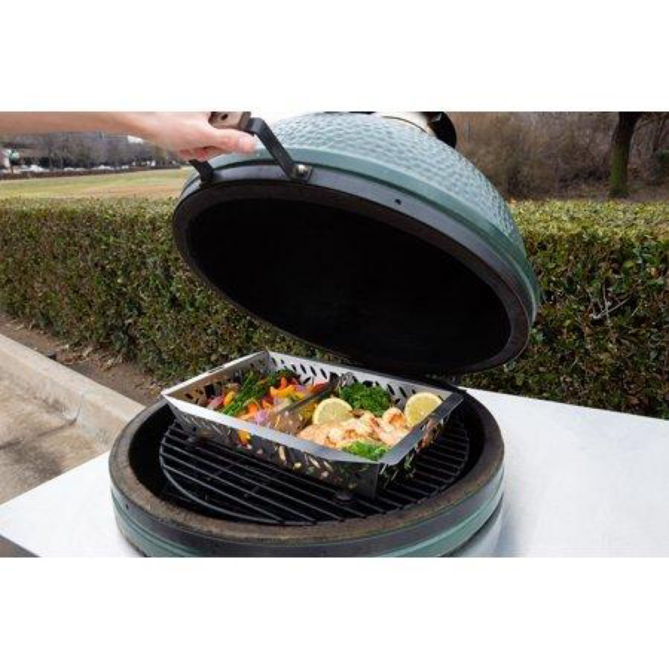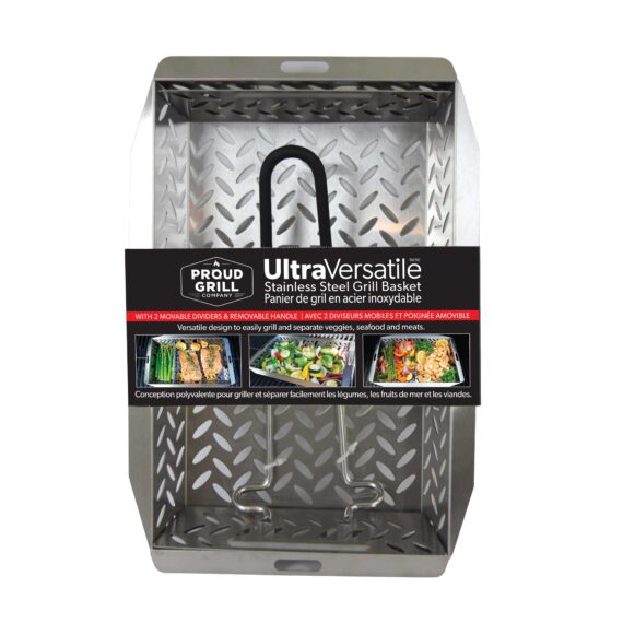 Grill Veggies your Way! Our UltraVersatile Grill Basket is a large stainless steel grill basket for grilling vegetables, fish and meat. The versatile basket design with a removable handle easily allows you to grill and separate veggies, seafood and meat. Load it up or Customize your Grilling Space.